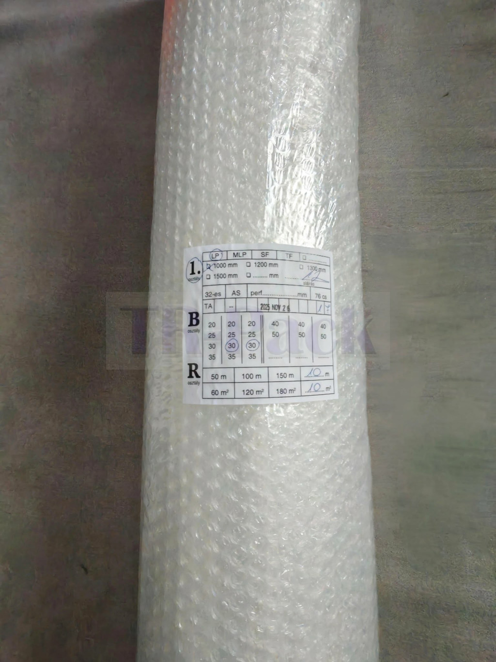 I. osztályú LDPE kétrétegü légpárnás (buborékos) fólia.