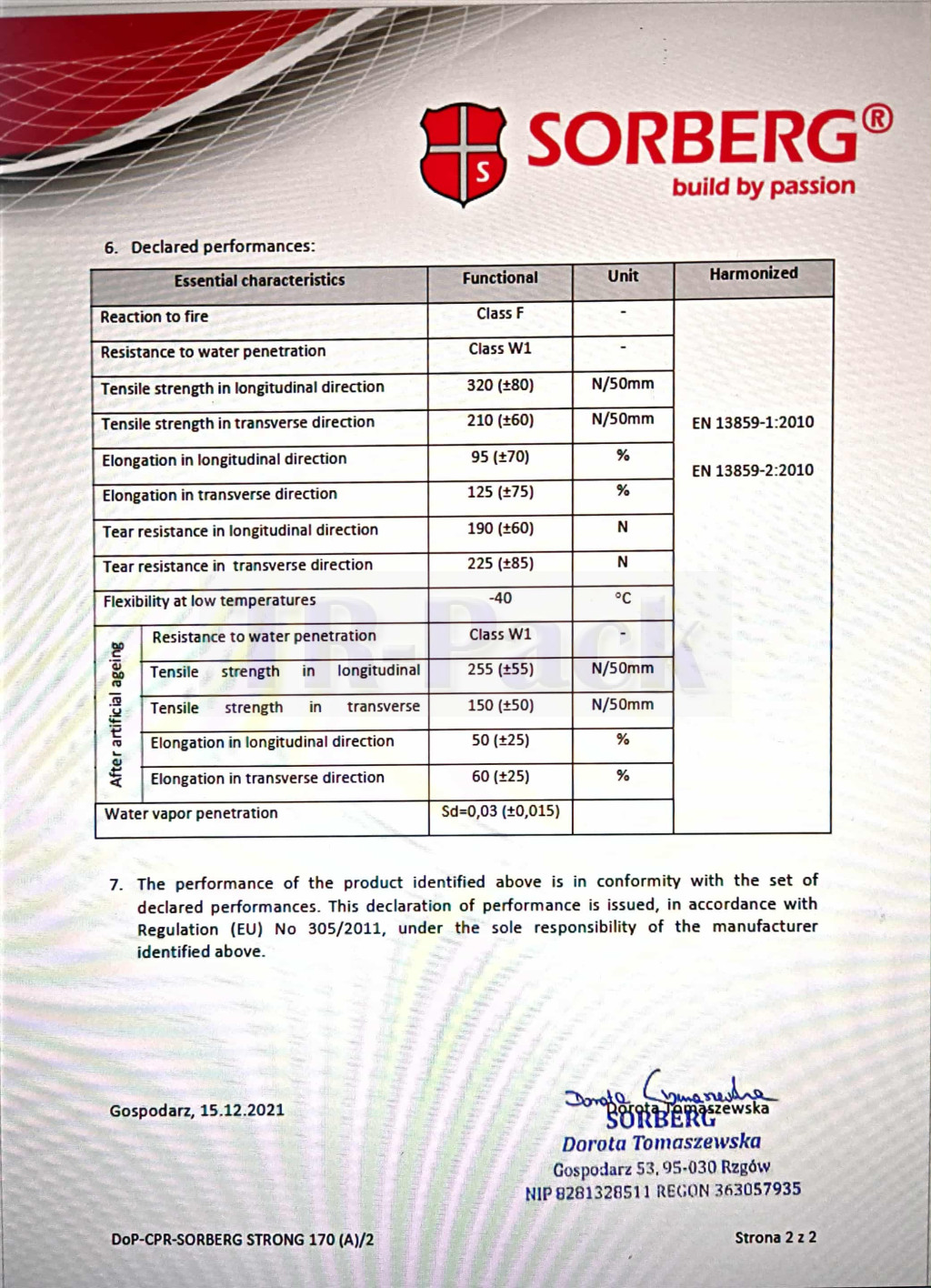 A dokumentációkat, telljesítménynyilatkozatot a fotók között találja.